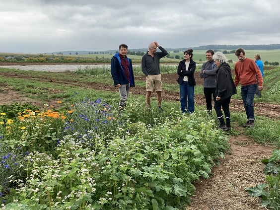 Anfang Juli besuchten Mitglieder des Grünen Ortsverbandes Gleichen sowie die Landratskandidatin Marie Kollenrodt von Bündnis 90/Die Grünen zwei landwirtschaftliche Betriebe in der Gemeinde Gleichen, die mit regionaler Vermarktung und nachhaltiger Bewirtschaftung auf sich aufmerksam machen: der Niedecker Milchhof Traupe und die Biogärtnerei Rote Rübe - Schwarzer Rettich in Rittmarshausen.