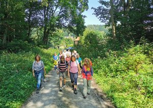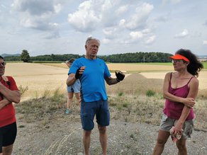 5. September 2021 Eine bunte Gruppe von 22 Bürger*innen der Gemeinde folgten der Einladung der Gleichener Grünen zu einer Wanderung auf und um die Gleichen. Am Sonntagmittag startete die fröhliche Gesellschaft an der Kapelle Wittmarshof, ihr voraus Hans-Joachim Bruns-Kaisinger und das grasgrüne Lastenfahrrad mit Getränken, Kaffee und Kuchen. Nur eine knappe Stunde später war der Picknickplatz kurz unterhalb der Kuppe erreicht.