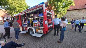 Vera Oesterle, seit Jahren aktive Ratsfrau in der Gemeinde Gleichen, und Ortrud Kaisinger, eine der Kandidat*innen für die aktuelle Kommunalwahl, besuchten am 3. September die feierliche Übergabe der beiden Feuerwehr-Fahrzeuge an die Ortswehren Gelliehausen und Sattenhausen. Ortsbrandmeister Tobias Rümenapf erläuterte ihnen ausführlich die Vorzüge der bereits seit 2020 im Einsatz befindlichen Tragkraftspritzenfahrzeuge. Gemeinsam mit der stellvertretenden grünen Landrätin Maria Gerl-Plein und der Pastorin Julia Kettler aus Reinhausen wurden sie sogar zu einer kleinen "Damen-Rundfahrt" eingeladen!