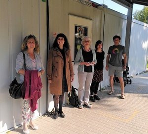 Die stellvertretende Leiterin Julia Merkle schilderte anschaulich und eindrücklich die nur durch viele Nachbesserungen - auf Initiative der Erzieherinnen - einigermaßen erträgliche Raumsituation in der Container-Krippe.